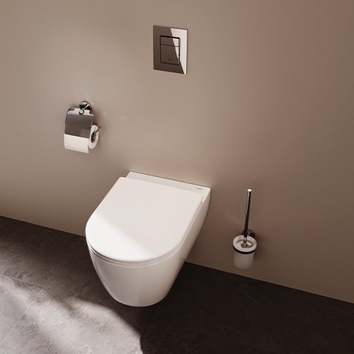 In der Alltagsnutzung punkten die GROHE Essence Keramiken mit durchdachten Features: Die GROHE AquaCeramic Antihaftbeschichtung weist Schmutz und Kalkablagerungen zuverlässig ab. Die GROHE HyperClean Glasur mit antibakteriellen Eigenschaften trägt dazu bei, dass die Keramiken dauerhaft hygienisch bleiben. Das Wand-WC ist darüber hinaus mit der GROHE TripleVortex Spültechnik ausgestattet: Drei Wasserzuläufe erzeugen einen kraftvollen Strudel für eine besonders effektive Spülung.