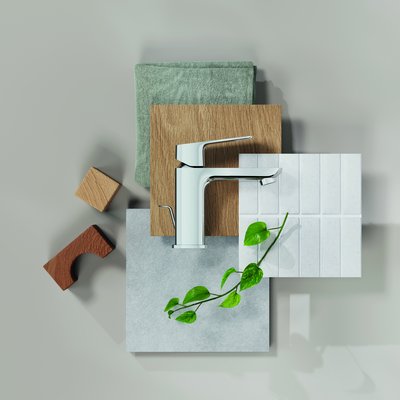In klassischem Chrom passt GROHE Cubeo zur weichen, hellen Trendfarbe Coconut Milk. Die Kombination wirkt einladend und beruhigend; Natureiche, Pflanzen und salbeifarbene Accessoires machen das Bad zu einem gemütlichen Rückzugsort.