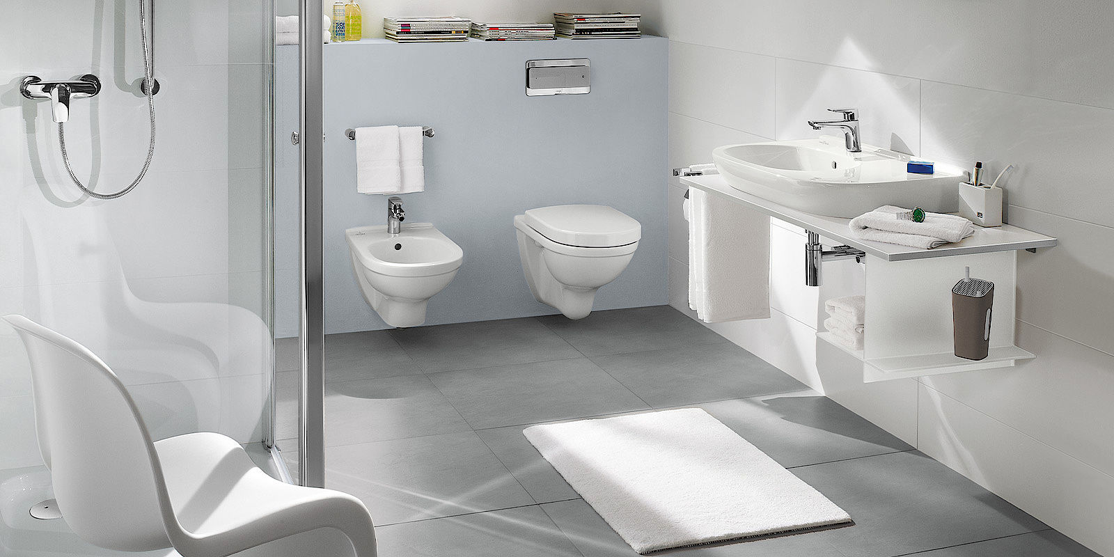 Das Komfort-Bad ist ein Bad der oberen Mittelklasse, das sich durch seine persönliche Note auszeichnet. In der Gestaltung werden Ihre Wünsche und Ihr persönlicher Stil verwirklicht. Von der Wellness-Duschlösung über die gehobene Badausstattung bis hin zur kreativen Fliesenplanung – alles ist möglich. Auch maßgefertigte Einbauten und Stauräume gehören zum Komfort-Konzept. Für ein Bad, das perfekt zu Ihnen und Ihren Ansprüchen passt.