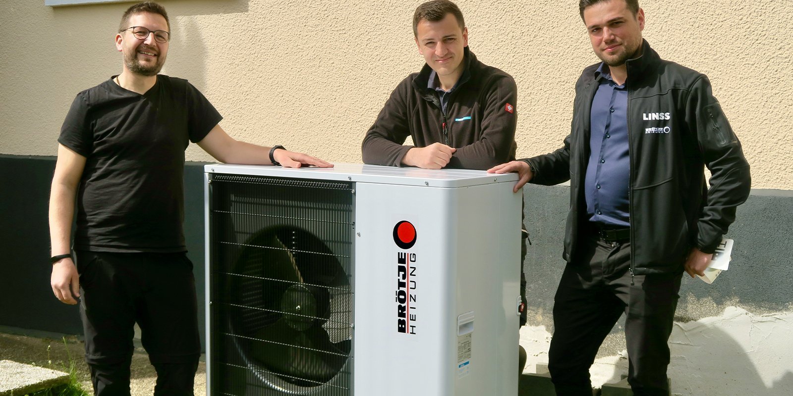 Zufriedene Gesichter v. l. n. r.: Auftraggeber und Bauherr, Martin Biedenbach, Projektleiter Dimitri Bruch und BRÖTJE Technischer Außendienst bei der Linss GmbH, Ivan Kessler.